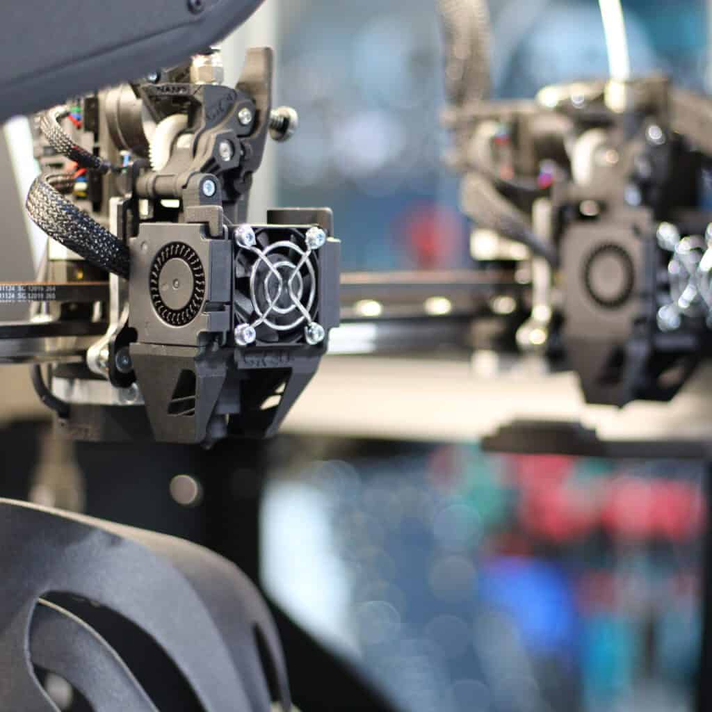 - Unabhängige Extruder: Zwei vollständig getrennt arbeitende Druckköpfe ermöglichen den gleichzeitigen Druck von zwei Bauteilen oder komplexen Multi-Material-Projekten.