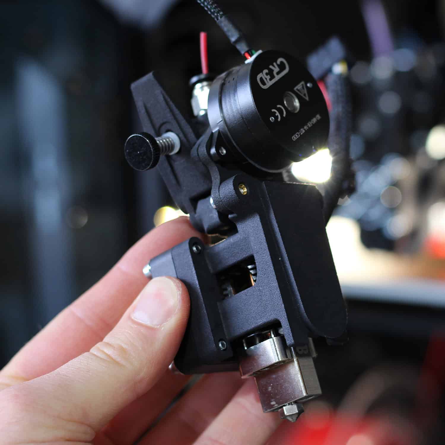 Im Herzen arbeitet ein leistungsstarker High-Flow-Direct-Drive-Extruder mit verschleißfester 0,4 mm Tungsten-Carbide-Düse.