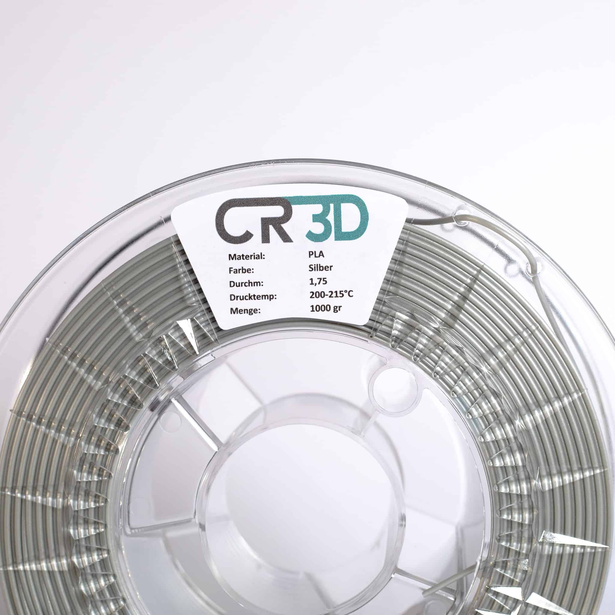 PLA Silber (Polyactid) ist ein biobasierter Kunststoff, der neben dem ABS eines der am häufigsten eingesetzten Materialien im 3D-Druck nach dem FDM Verfahren ist. PLA besteht zu 100% aus biogenen, also nachwachsenden Rohstoffen (Zucker und Maisstärke) und ist damit auch biologisch abbaubar, also kompostierbar. Das Material ist ein verformbarer Kunststoff (Thermoplast) und zeichnet sich durch eine leicht glänzende und kratzfeste Oberfläche aus. Er kann zudem eingefärbt werden, ist resistent gegenüber vielen Chemikalien und bis 65°C temperaturbeständig.